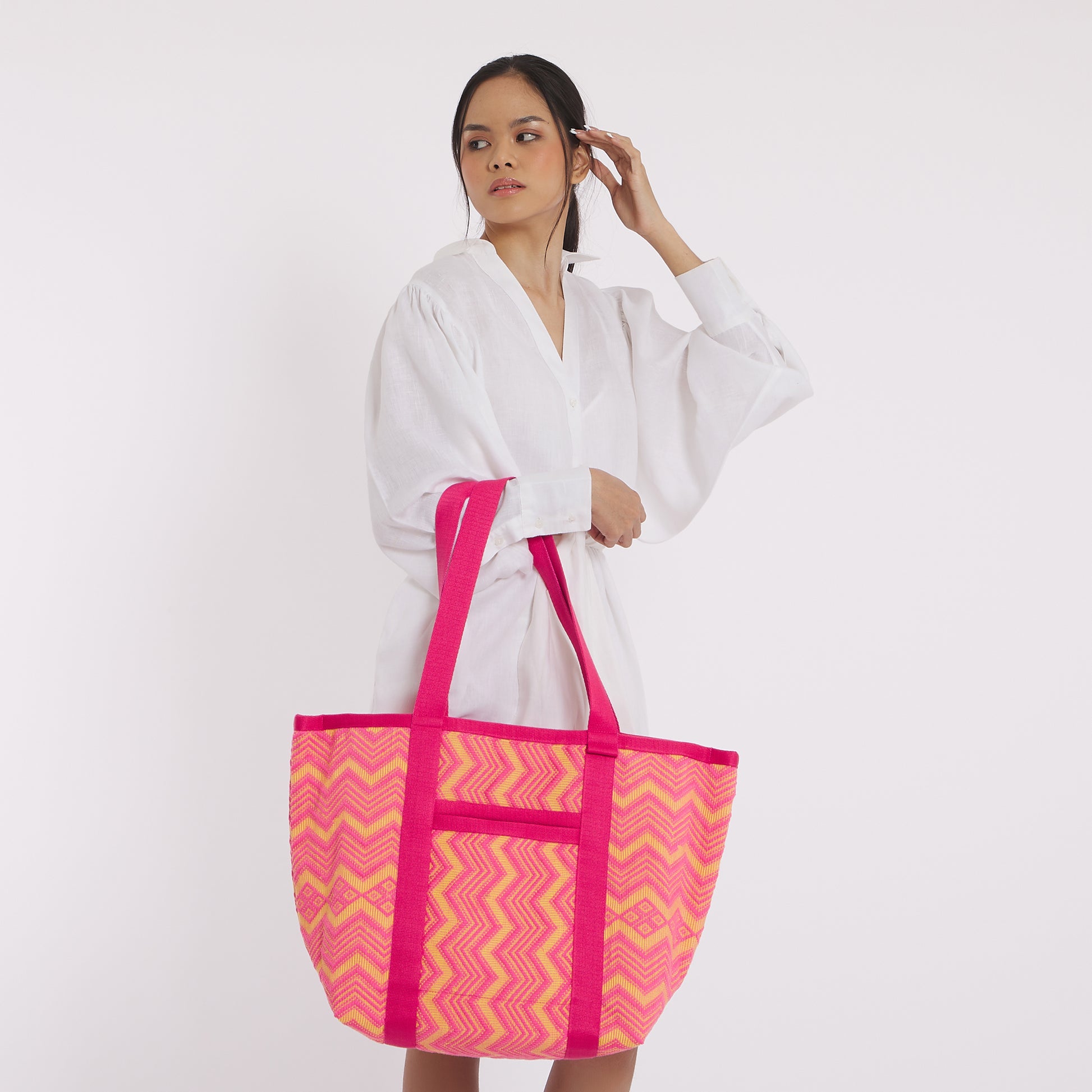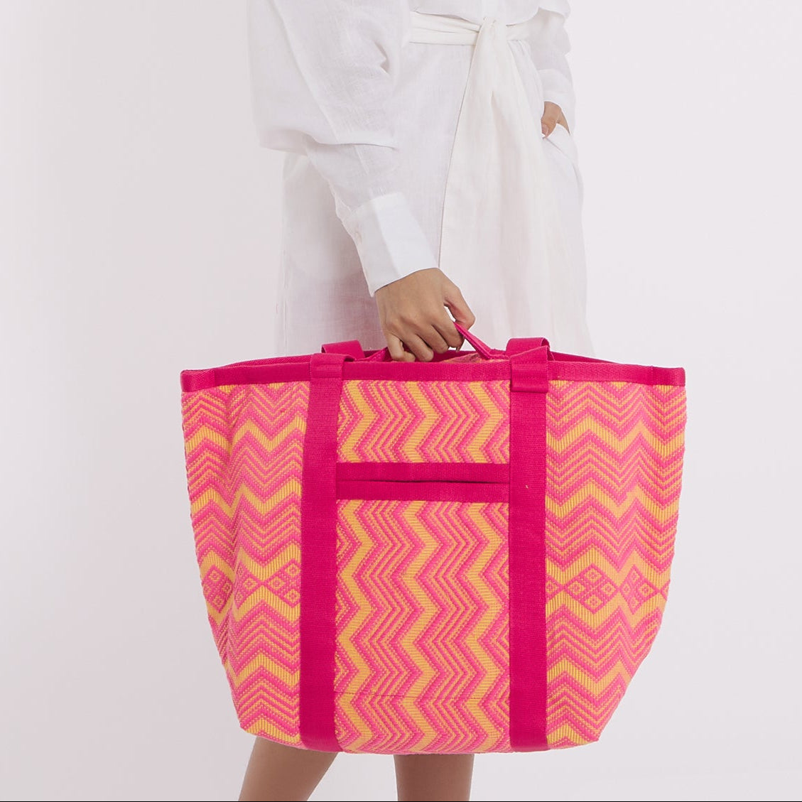 The vibrant Zig Zag pattern showcases the traditional Pinilian weave, symbolizing unity and community through interwoven human forms.