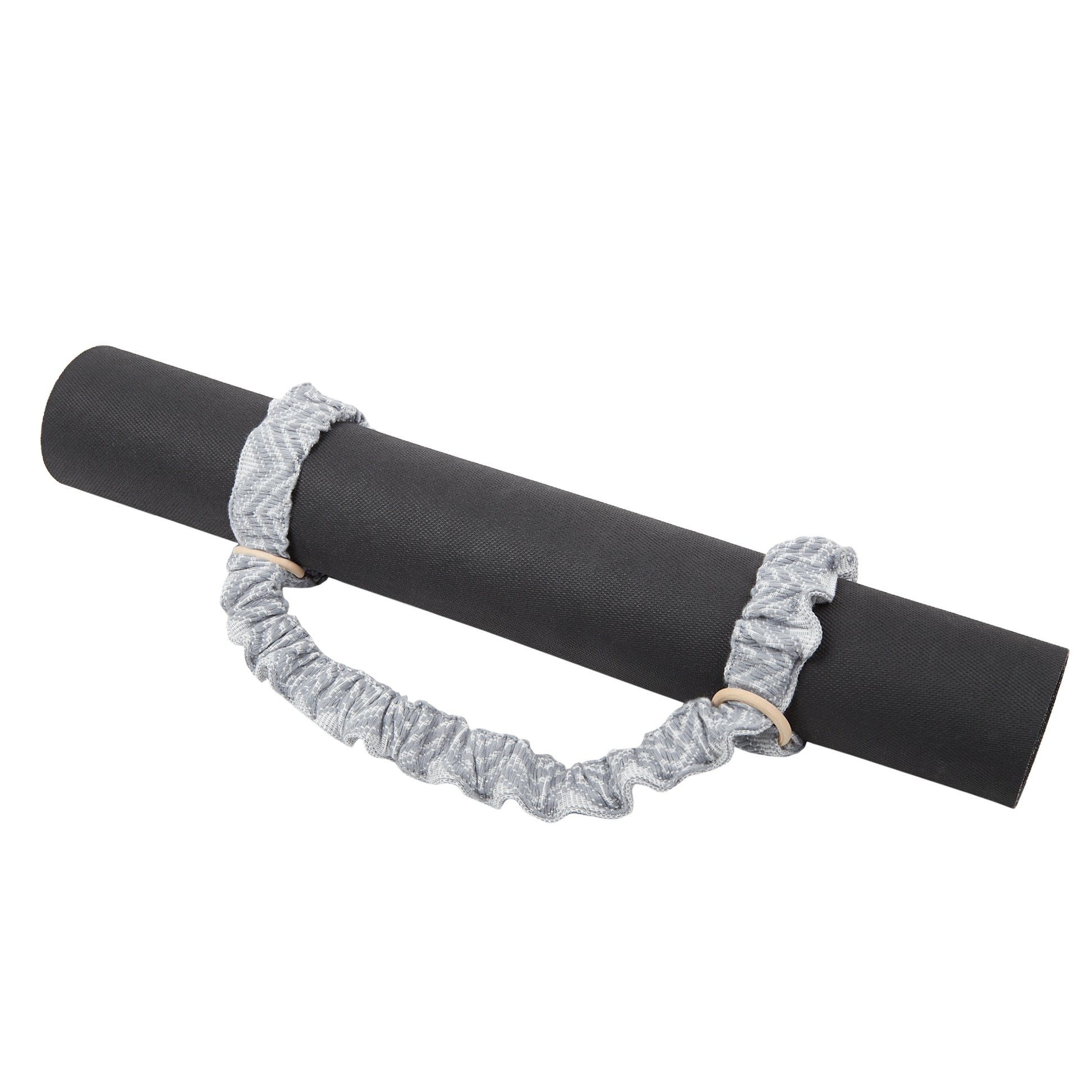workout, the carrier has an elastic fit and natural wooden rings to conveniently adjust and fit your mat.