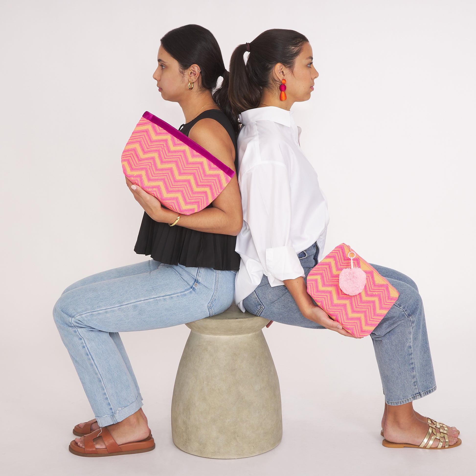 The Palawan Zig Zag - Pink Velvet Trimmings - Size: 31cm x 20cm